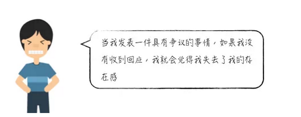 boomerangs 在詞典中的翻譯是“回力鏢;自作自受,自食其果”,我覺(jué)得這個(gè)詞應該是取的“回力鏢”的解釋?zhuān)[喻那種分享信息是為了得到反饋和認同的人,就像扔出回力標為了等到它最后返回手中,因此我將這類(lèi)人,稱(chēng)作“尋求認同者”,這類(lèi)人分享內容,是為了能得到其它人的回應和認同,并根據回應強化自己對某些事的看法或認知;一旦沒(méi)有收到反饋或是沒(méi)有得到認同,他們則會(huì )覺(jué)得沒(méi)有存在感。