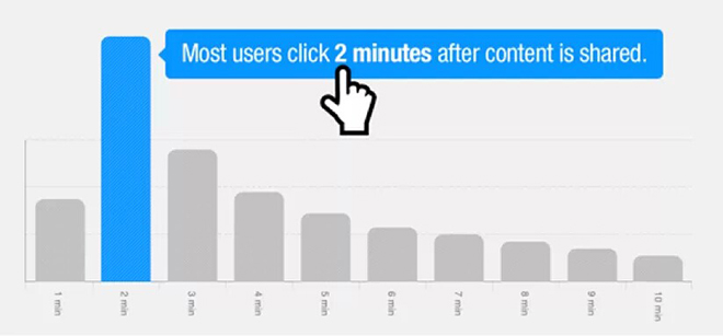 一條分享 75% 的反饋發(fā)生在分享后的一天內,其中反饋的高峰是分享 2 分鐘后。