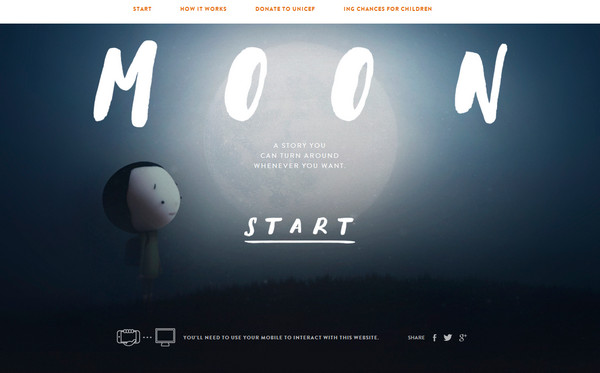 Moon這個(gè)腦洞大開(kāi)的網(wǎng)頁(yè),被推薦到Awwwards上時(shí)曾得到許多設計師的盛贊。設計師以講故事的形式來(lái)呈現尖銳的社會(huì )問(wèn)題,巧妙地讓可愛(ài)的藝術(shù)感染力同人文關(guān)懷充分結合到一起,發(fā)人深省。