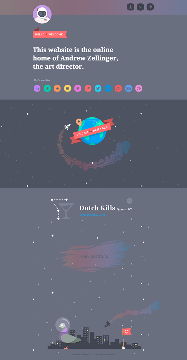 6.這個(gè)網(wǎng)站的風(fēng)格比較復古,并且使用了較多的圓形元素設計。幾何元素豐富的頁(yè)面一旦處理不當會(huì )顯得很繁復,頁(yè)面重點(diǎn)就會(huì )變得很難抓,用戶(hù)在瀏覽的時(shí)候會(huì )感到很困惑,所以絲帶效果的又一功能被展現了,它能讓內容更醒目和靈動(dòng)。
