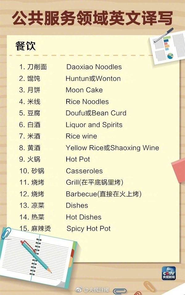 【國家標準】麻辣燙、餛飩、寬帶英文咋翻譯?