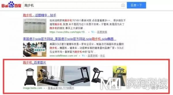 通過(guò)以上圖我們可以看見(jiàn)百度快照排名第一個(gè)是百度百科,百度百科是幫助用戶(hù)解決跑步機相關(guān)“知識”問(wèn)題的,排名第二個(gè)商城,幫助用戶(hù)解決購買(mǎi)需求的,排名第三個(gè)是做跑步機“評測”的。接下來(lái)再看如下圖所示: