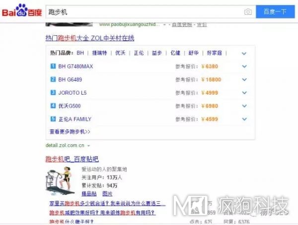 排在第四的是中關(guān)村網(wǎng)站,中關(guān)村是做價(jià)格對比的,幫助用戶(hù)解決關(guān)于跑步機“價(jià)格”的問(wèn)題,貼吧也是解決相關(guān)“知識”的問(wèn)題。